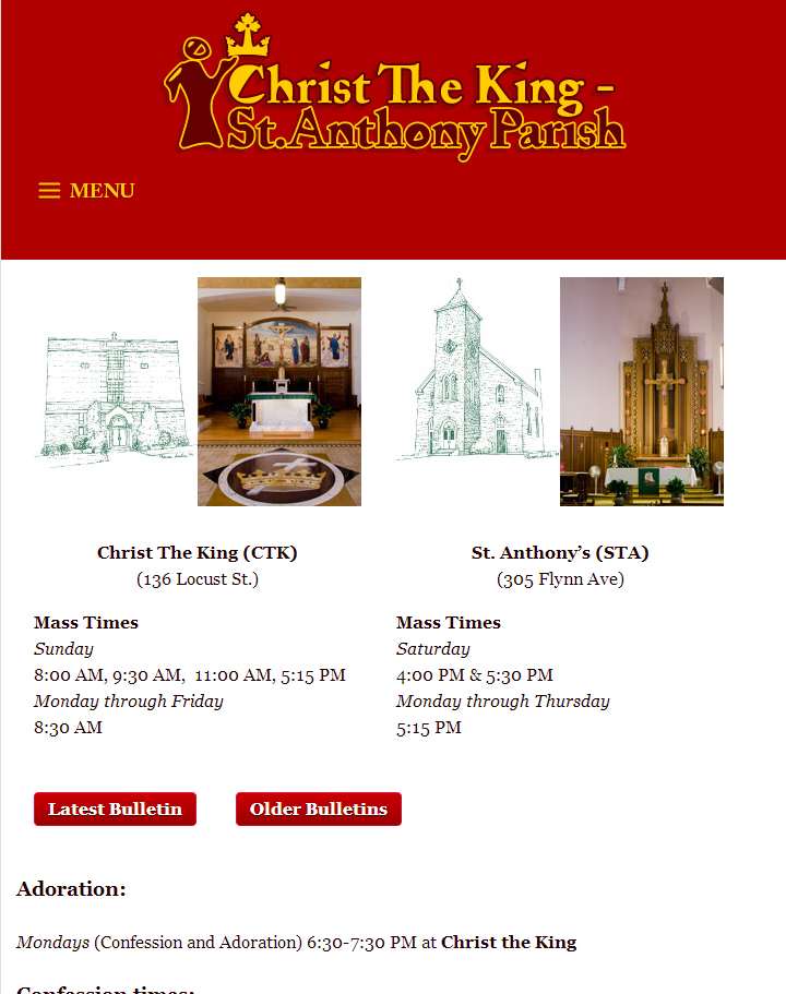 The color I used to create a Z layout, and pull the eyes across the information. The features I placed towards the end, as this is “extra information.” Since you would already know if the shop was open due to the feed, the hours become less important information, whereas the menu/specials is important for new visitors. And the slideshow should help whet your appetite.
